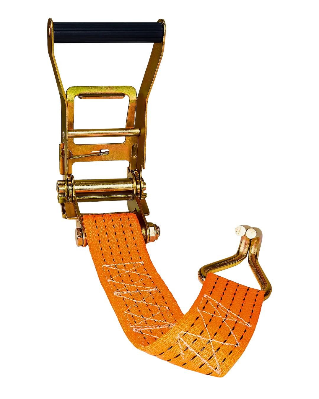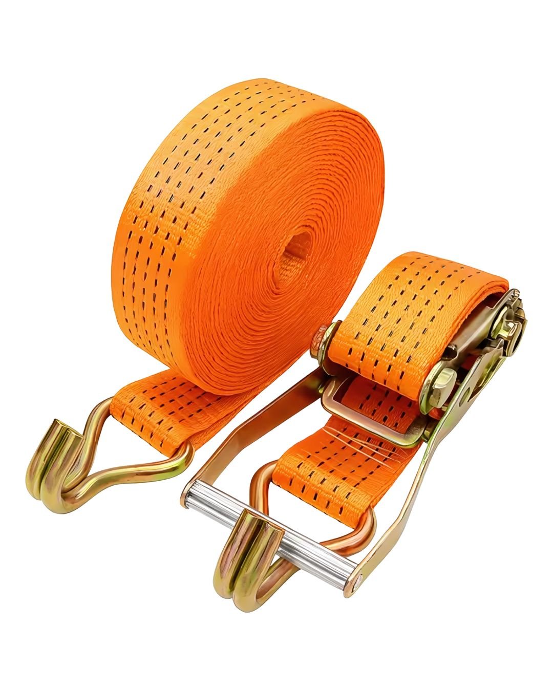 A catraca metálica de alta resistência permite um tensionamento firme e rápido, evitando que a carga se desloque durante o transporte. Os ganchos tipo “J” em aço zincado proporcionam encaixe seguro em pontos de fixação, suportando grandes esforços com estabilidade.